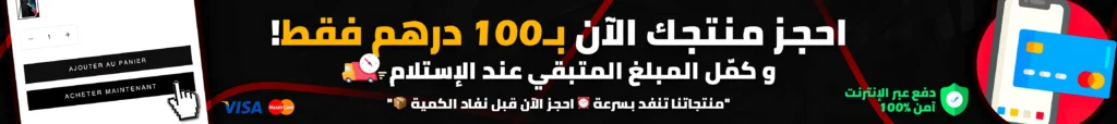 🔔 لطلب أي منتج، يكفي دفع تسبيق قدره 100 درهم فقط • الدفع عند الاستلام متوفر • توصيل سريع لجميع المدن المغربية